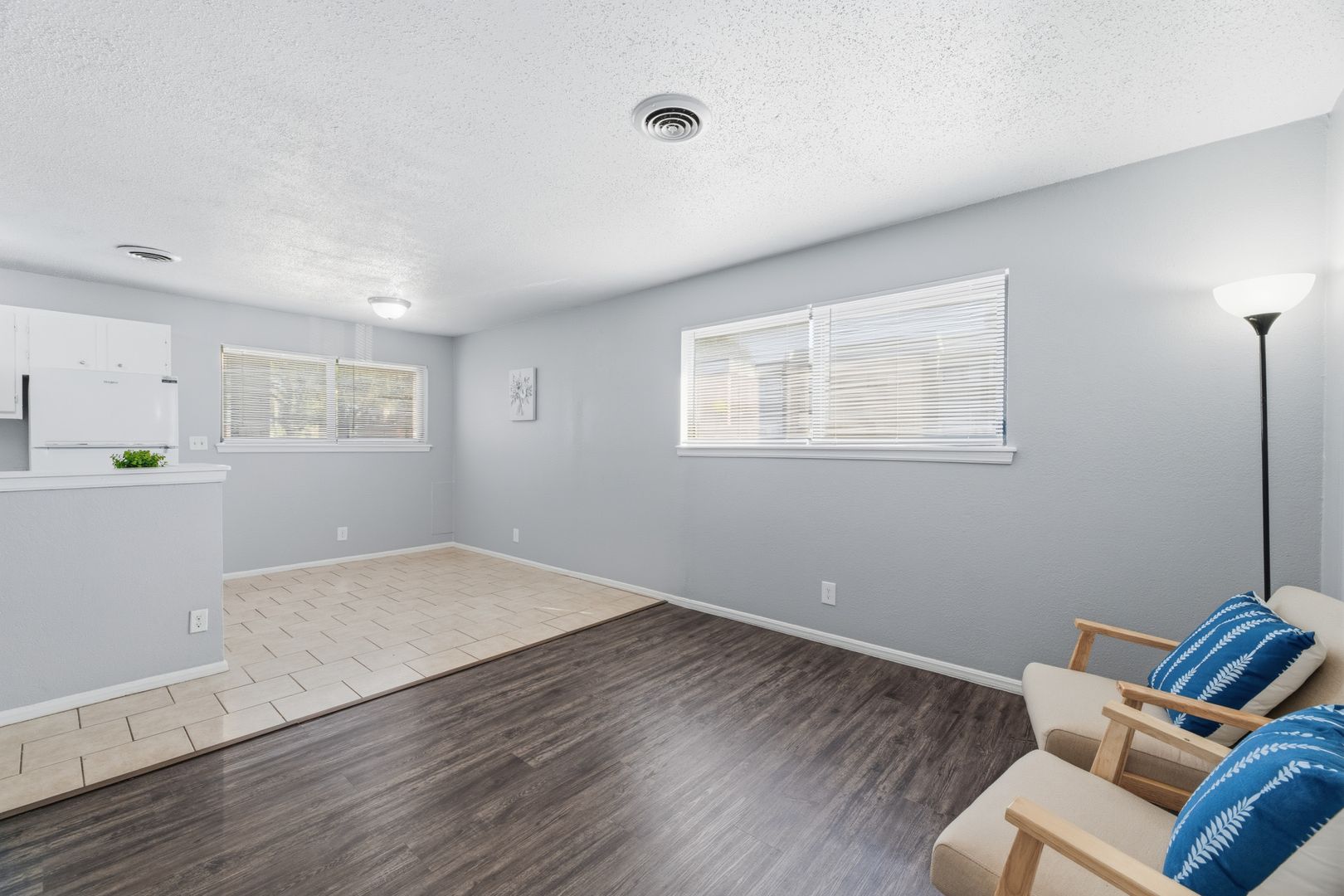 • Vinyl flooring throughout living space
