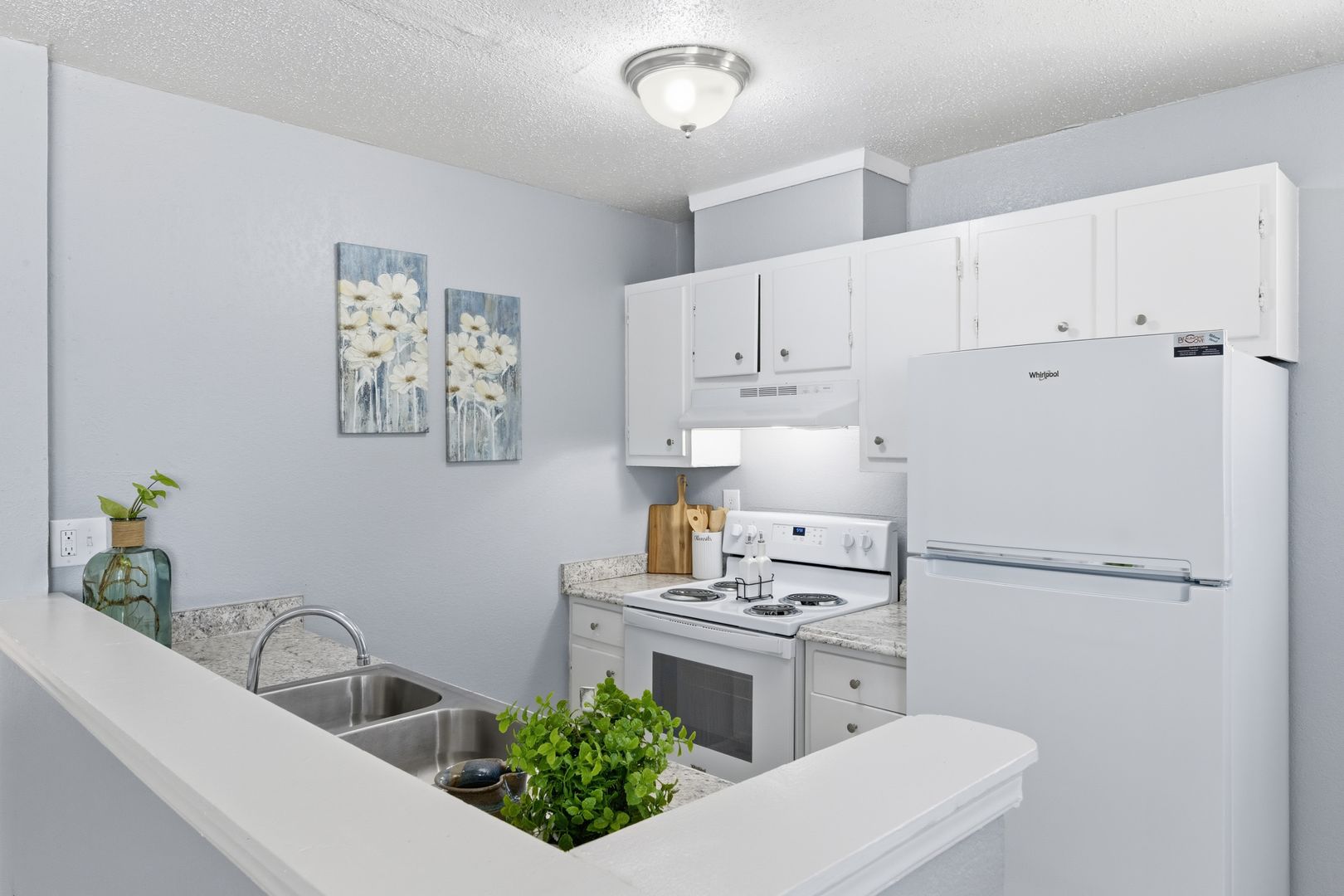 • Fully equipped kitchen with dishwasher, refrigerator, stove, and garbage disposal