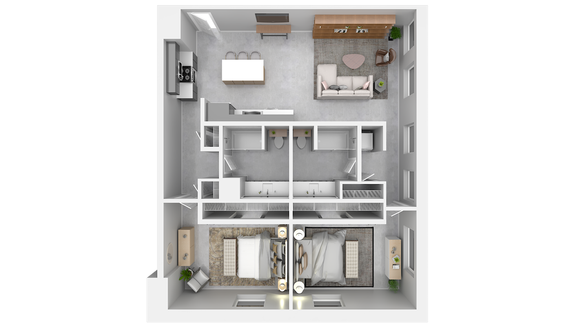 Refined Industrial Living: Luxury 2-Bedroom Apartment for You